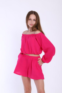 Костюм двойка детский "Магнолия" муслин (р-ры: 140-170) розовый