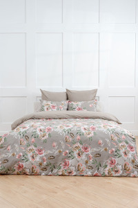 Постельное бельё из сатина с простыней на резинке (100% хлопок), плотность - 125 г/м2.