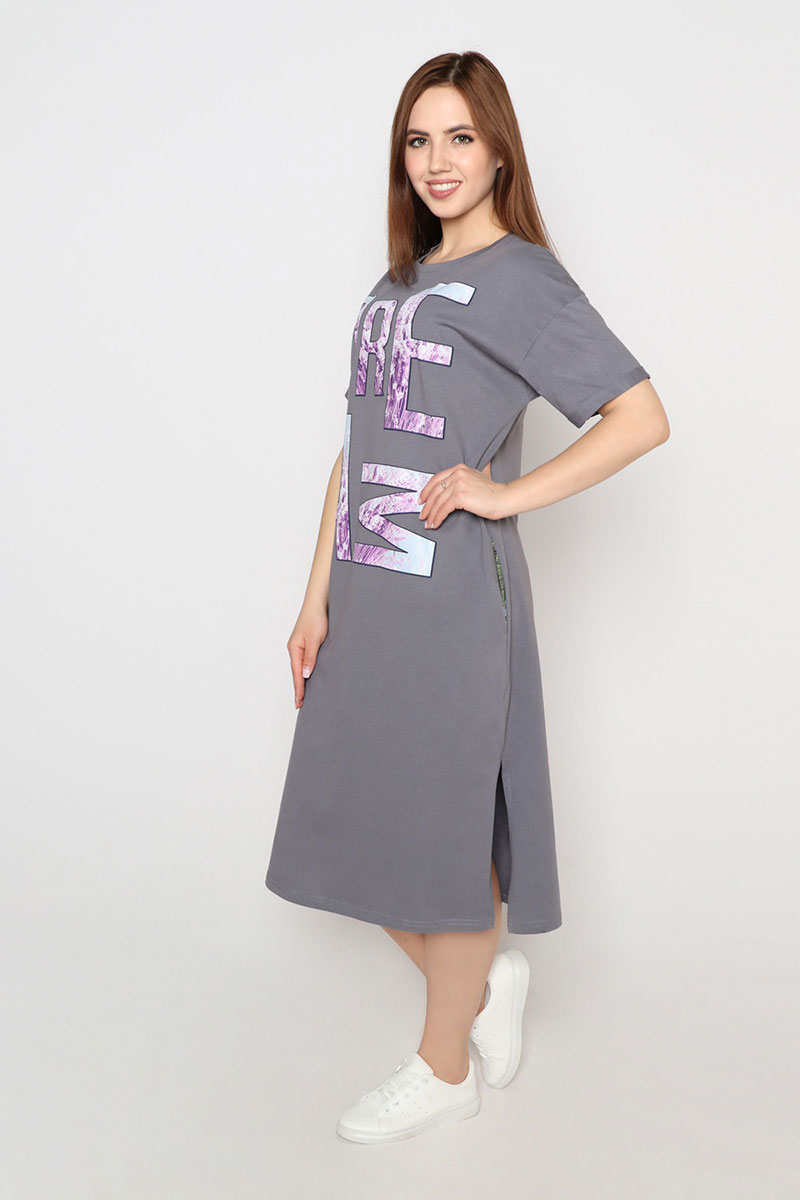 Представляем Вашему вниманию эффектное платье. Модель выполнена из натурального, приятного телу хлопка, который отлично пропускает воздух, позволяя коже дышать. Ткань украшена стильным принтом с буквами. Отлично сочетается и со спортивной обувью, и обувью на каблуке. Стильный наряд на каждый день.