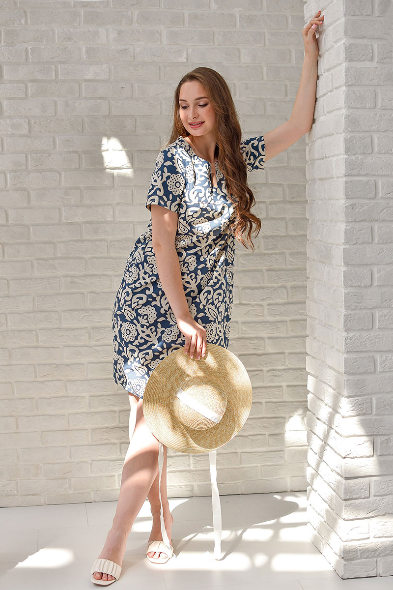 Представляем Вашему вниманию легкое женское платье из приятного к телу и дышащего полульна. Изделие красиво сидит на фигуре и подчеркивает её достоинства. В нём Вы будете чувствовать себя комфортно и уверенно.