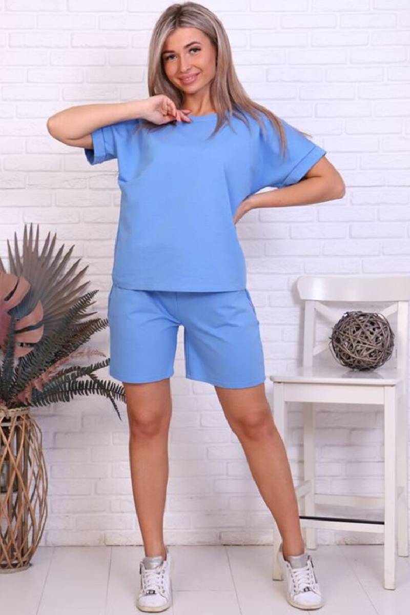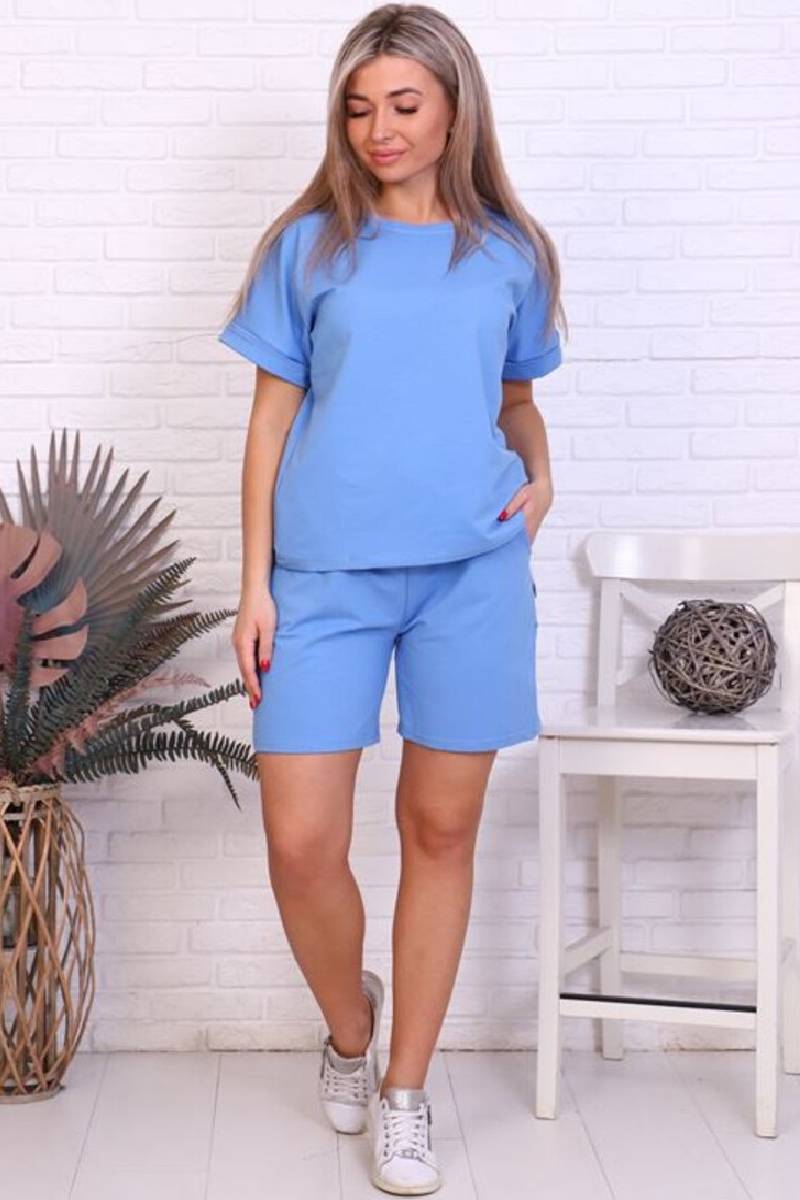 Представляем Вашему вниманию яркий женский костюм двойку, состоящий из шортов классической длины, дополненных небольшими карманами, и футболки прямого, свободного силуэта. Комплект изготовлен из высококачественного, приятного телу футера 2-х нитки, который хорошо пропускает воздух, позволяя коже дышать.