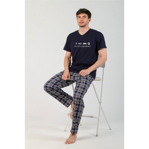 Представляем Вашему вниманию мужской костюм из дышащей и приятной к телу кулирки, состоящий из футболки и брюк. Футболка с V-образным вырезом горловины, со слегка спущенной линией плеч, с принтом на переде. Брюки с боковыми карманами, на притачном поясе с отстроченной эластичной тесьмой. В таком наряде Вы будете выглядеть модно, а чувствовать себя - удобно и комфортно.