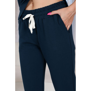 Представляем Вашему вниманию стильный и практичный женский костюм двойку, состоящий из футболки свободного кроя и длинных брюк на завязках, дополненных двумя потайными карманами. Комплект изготовлен из высококачественного, приятного телу футера, который хорошо пропускает воздух, позволяя коже дышать.