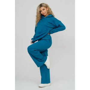 Представляем Вашему вниманию стильный женский костюм из футера - объёмная толстовка и брюки выполнен в стиле "oversize", модном и излюбленном тренде современности. Линия плеча спущена, а рукав и низ толстовки дополнены манжетами. Брюки-палаццо с высокой посадкой, боковыми карманами и поясом, обработанным на специализированной машине, делают их более удобными и комфортными. Костюм такого плана - это то, что выделяет Вас среди других, придавая изюминку и непосредственность новомодным аутфитам.