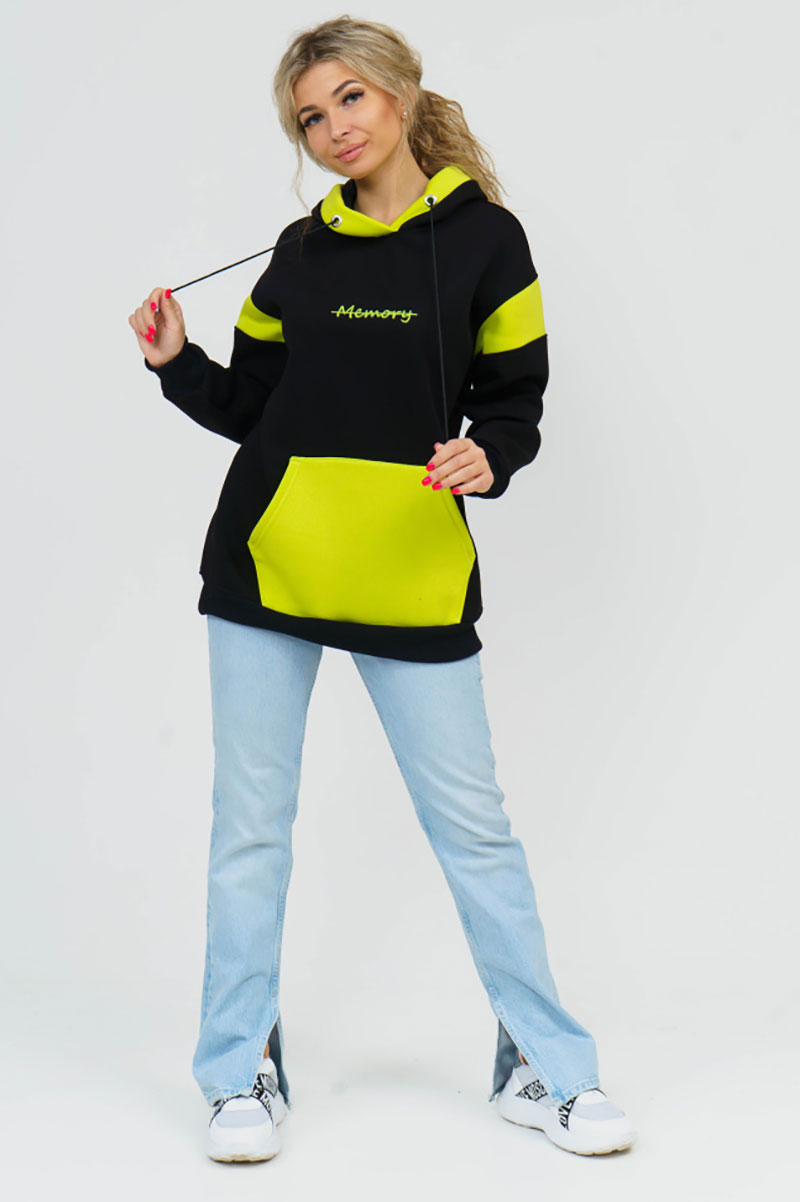 Толстовка женская 879 футер 3-х нитка с начесом пенье (р-ры: 44-56) черный-салатовый