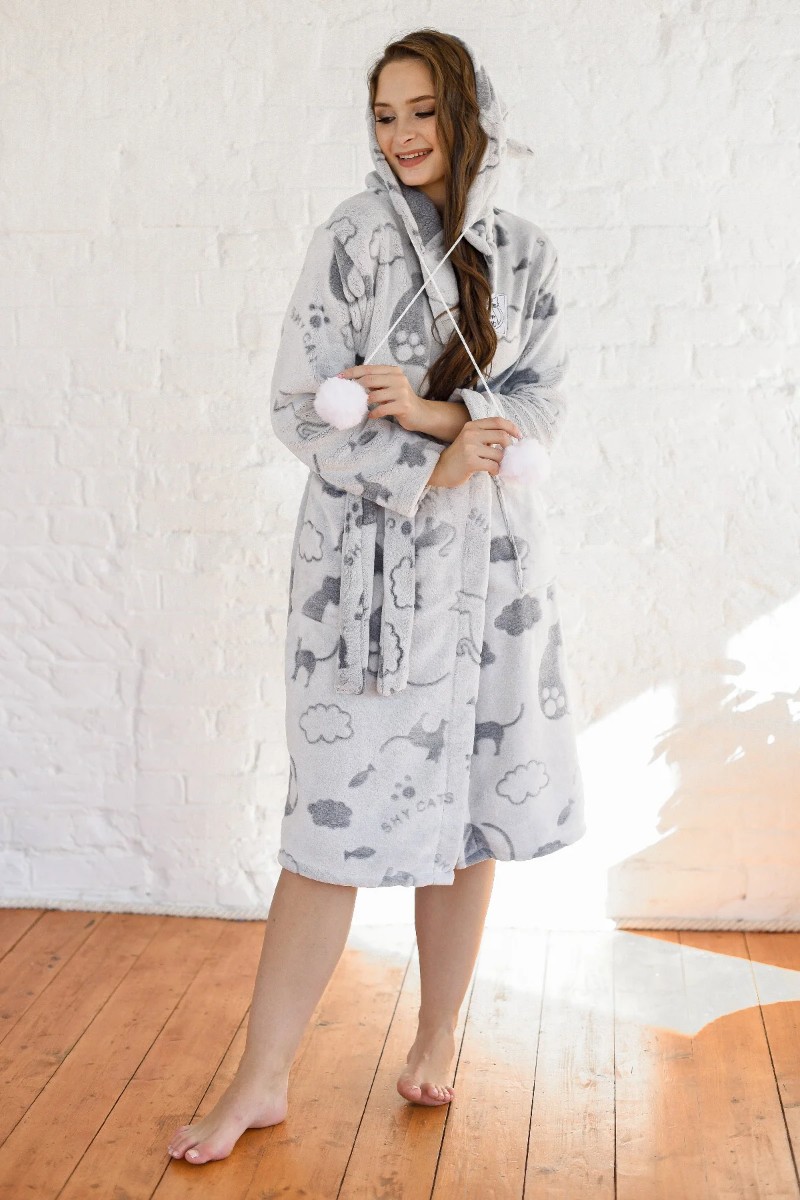 Халат женский "Кисуня" 1552-Эф экстрасофт (р-ры: 44-54) серый