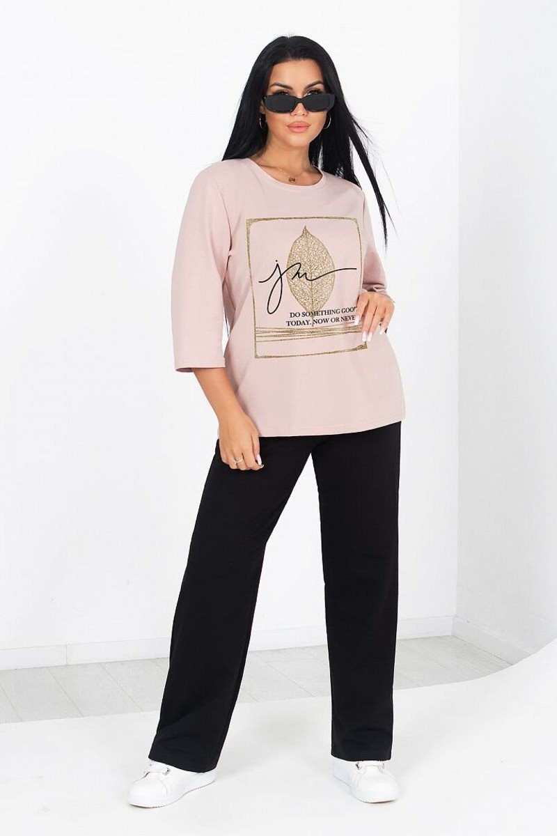 Костюм двойка женский "Хлоя" футер 2-х нитка (последний размер) пудра 52,60