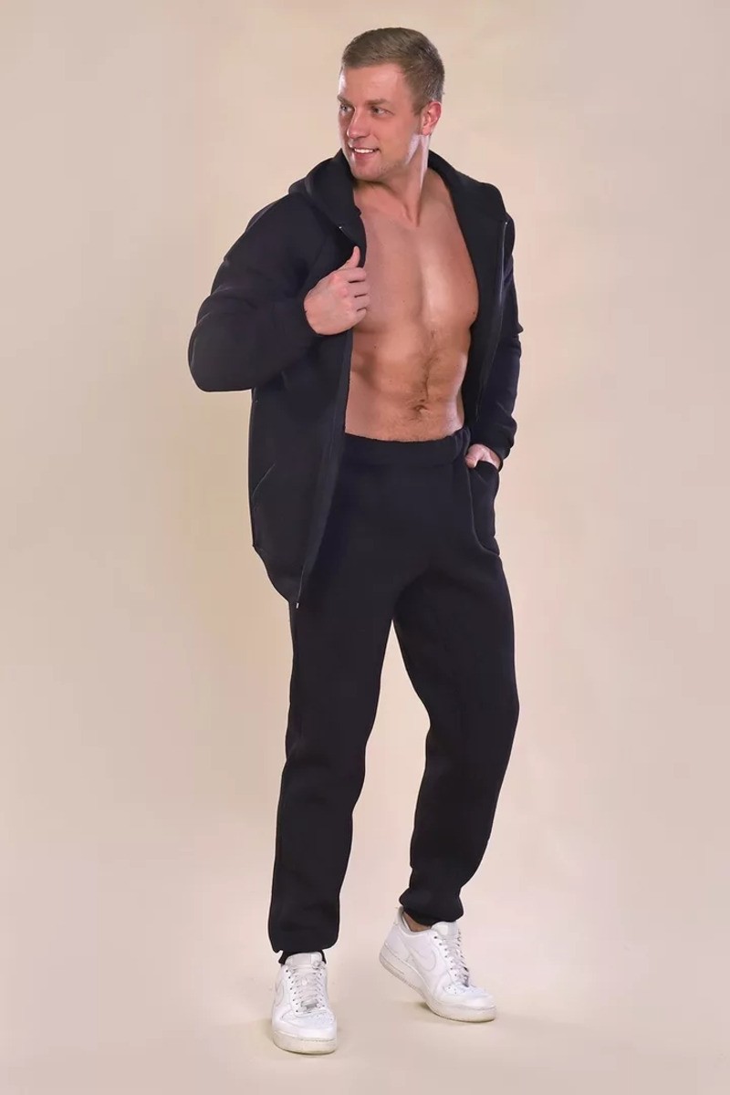 Костюм двойка мужской 888 "Zipper" футер 3-х нитка с начесом (р-ры: 50-60) черный