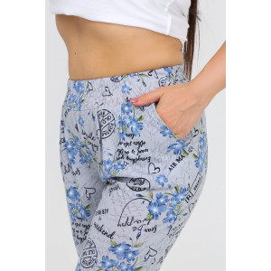 Представляем Вашему вниманию женские домашние брюки из легкой хлопковой ткани с принтом. Передняя половинка на кокетке, со складками и карманами. Брюки немного укороченные, в верхней части свободные, к низу зауженные. Пояс цельнокроенный, на резинке.