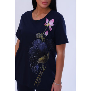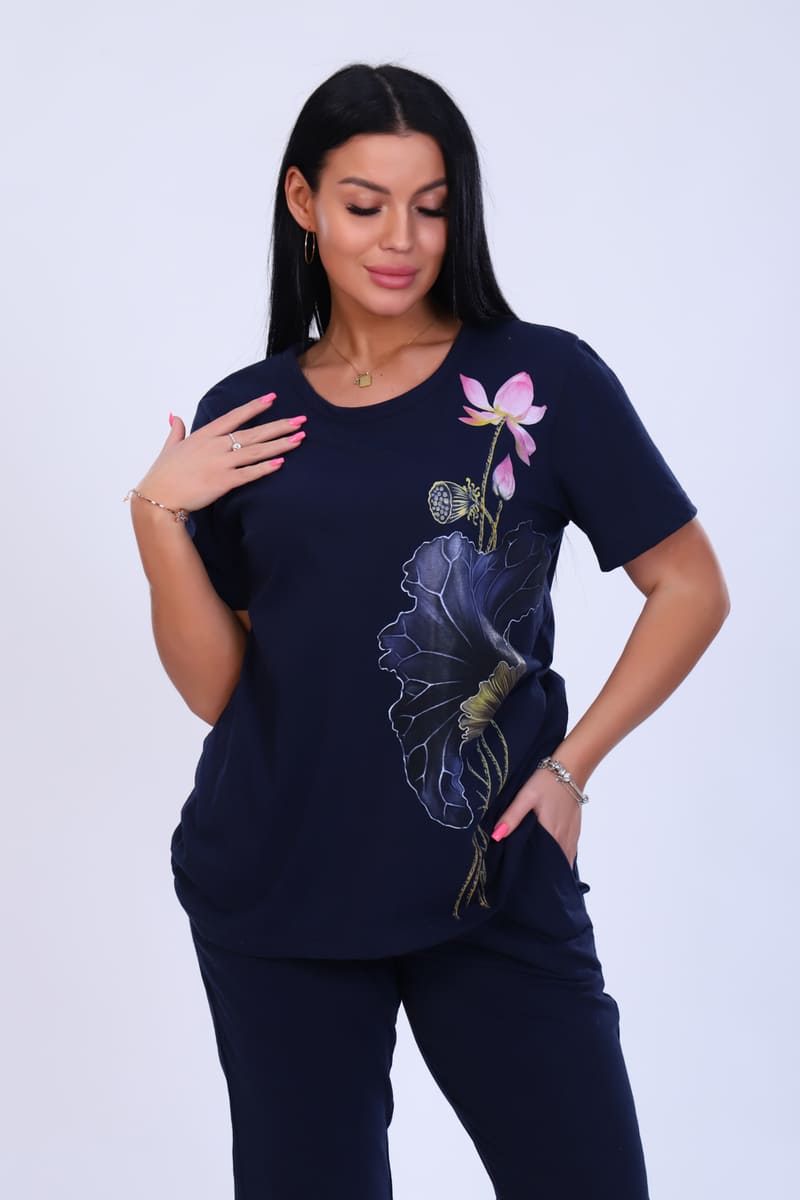 Костюм двойка женский №35708 кулирка (р-ры: 52-62) темно-синий