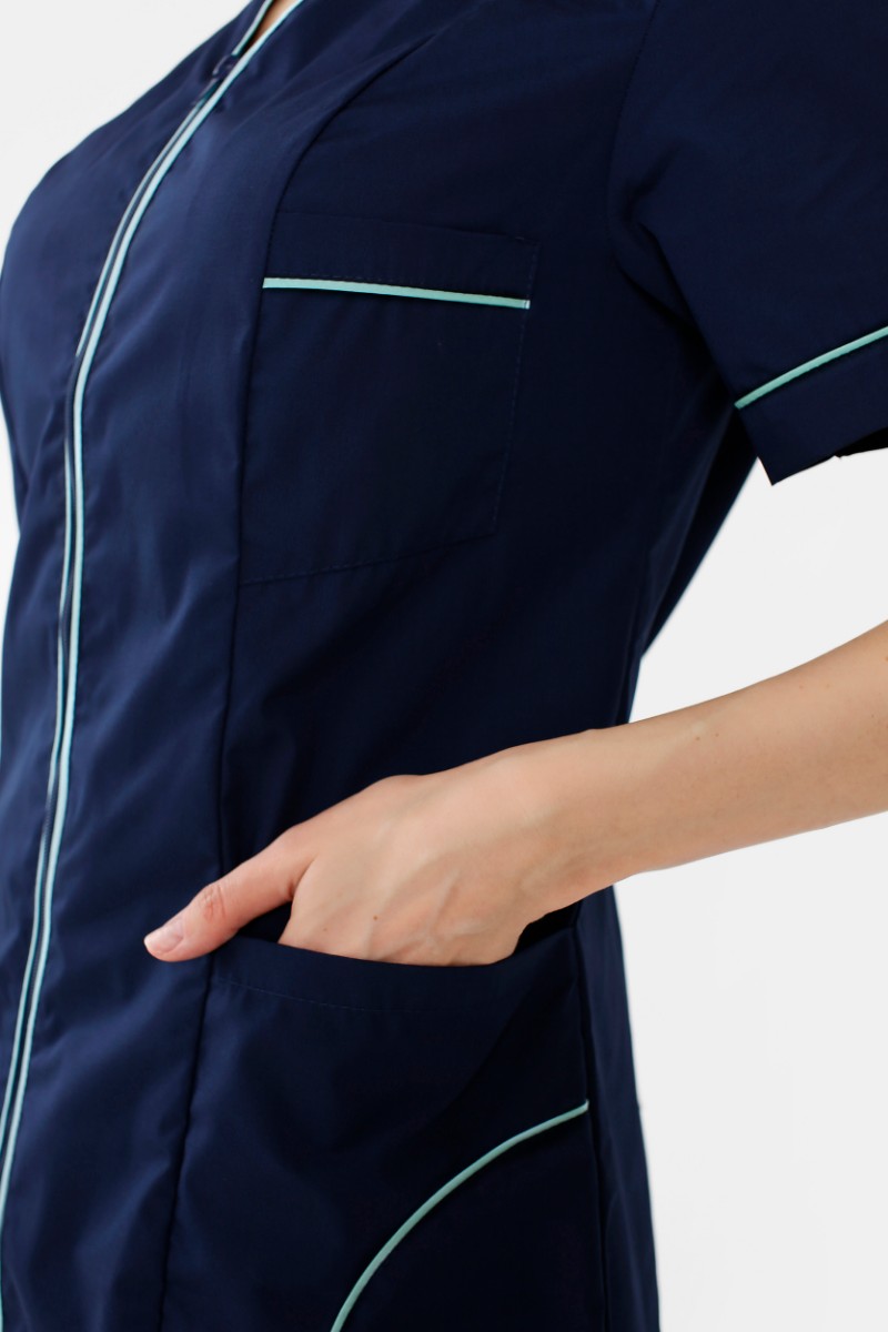 Халат медицинский женский "Сара" тиси (р-ры: 40-62) темно-синий+бирюзовый кант