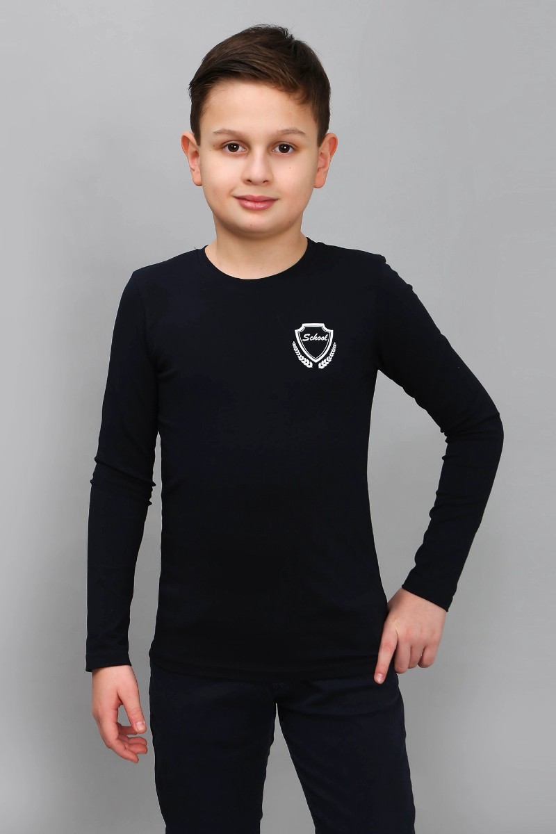 Представляем Вашему вниманию лаконичный школьный лонгслив, сшитый из приятной телу, высококачественной однотонной кулирки с добавлением эластана. Длинный втачной рукав, круглый вырез горловины, на полочке небольшой принт.
