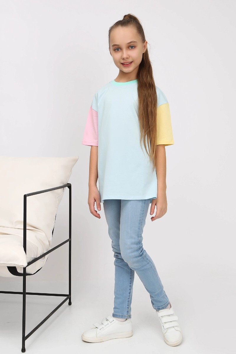Представляем Вашему вниманию свободную детскую футболку, сшитую из высококачественной, приятной телу кулирки - 100% натуральный хлопок, который отлично пропускает воздух, позволяя коже дышать. Круглый вырез горловины, короткий рукав со спущенной линией плеча.