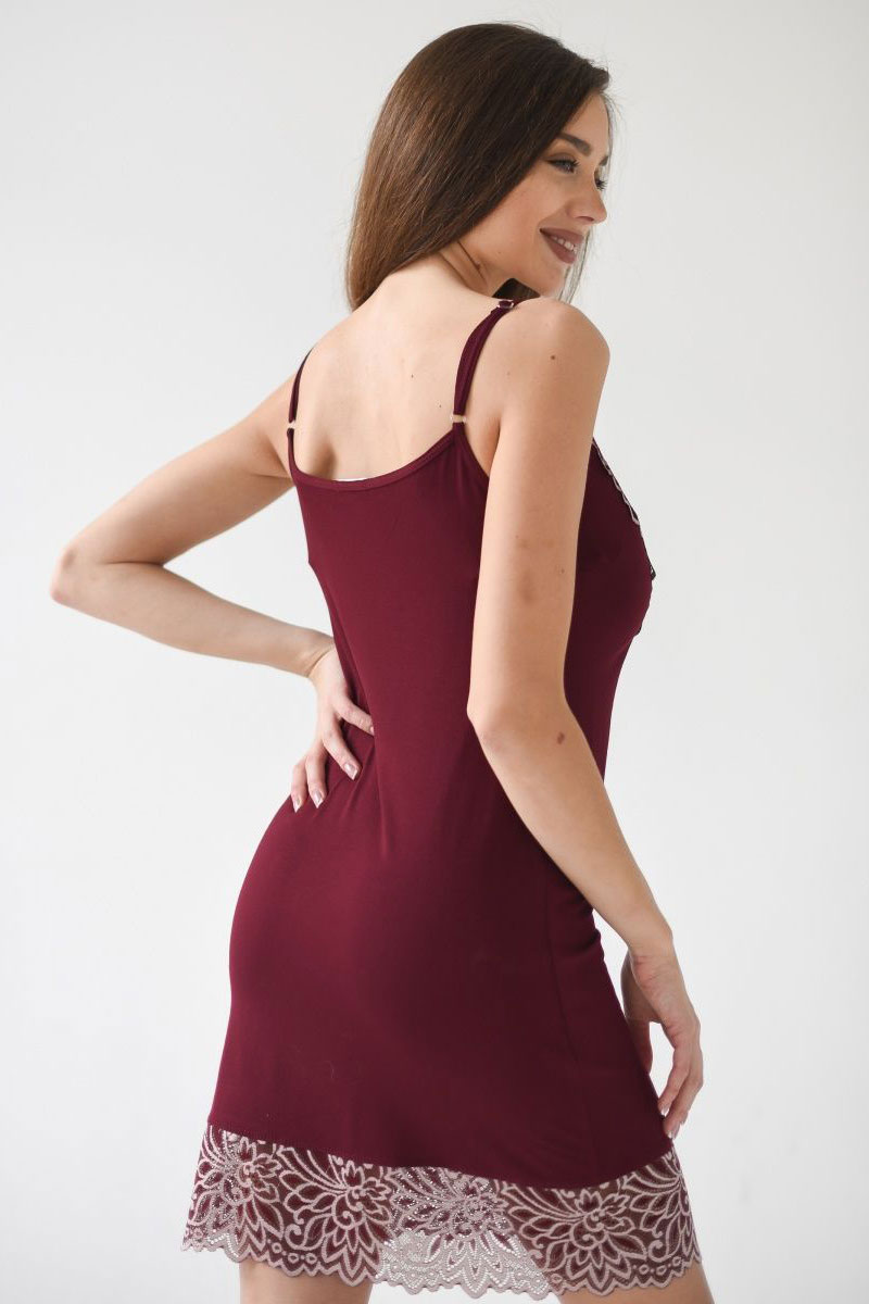 Сорочка женская "Сара" вискоза с кружевом (р-ры: 42-52) бордо