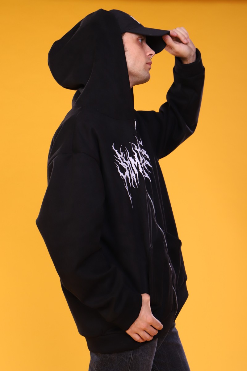 Худи мужское Д-Зип-01Ч трикотаж (р-ры: L-XXL) черный с принтом