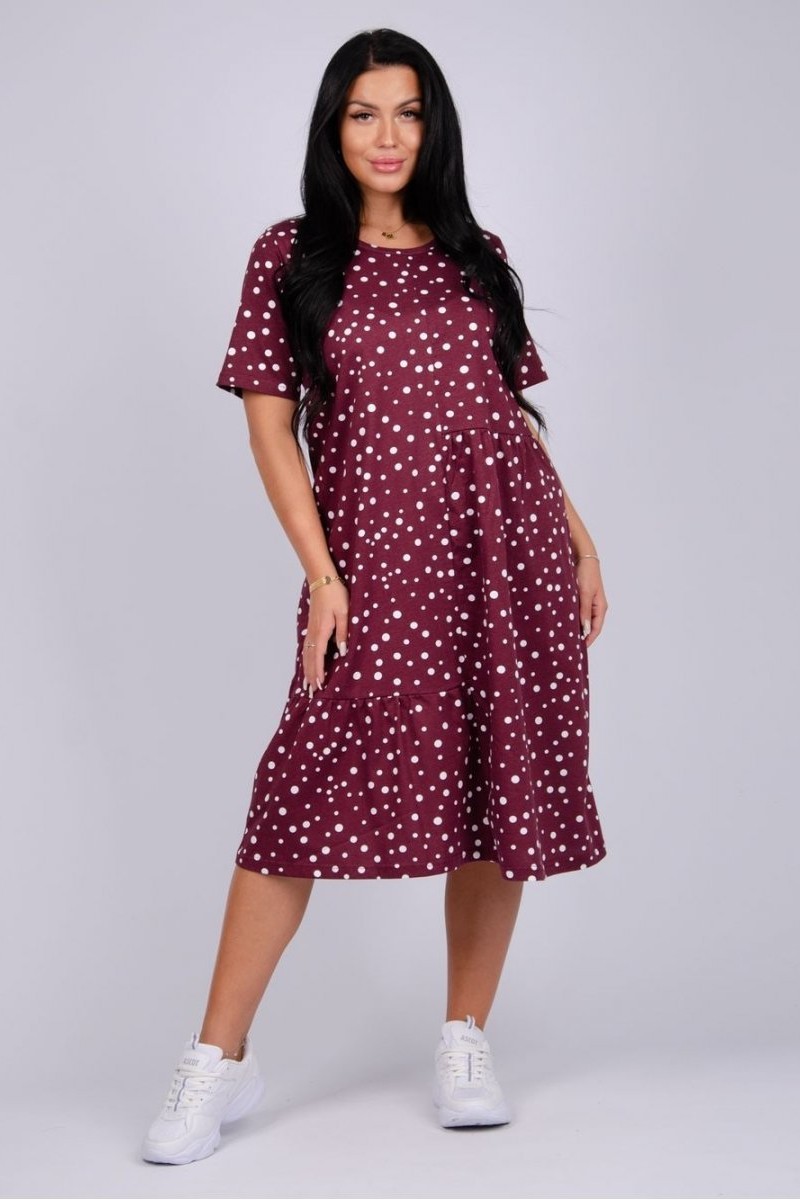 Платье женское "Незабудка" кулирка (р-ры: 50-60) горох бордовый