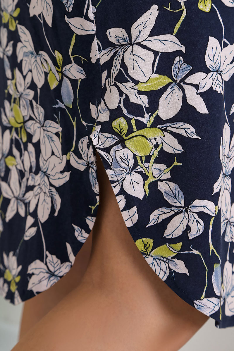 Представляем Вашему вниманию нежный женский халат из трикотажного полотна «кулирка» с набивным рисунком, прямого силуэта, с короткими втачными рукавами, карманами в боковых швах, фигурной линией низа и центральной бортовой застежкой на тесьму «молния». Рукава – с притачными манжетами. Горловина обработана притачной планкой. Швы притачивания манжет и планки горловины обработаны с узким кантом контрастного цвета. Входы в карманы окантованы основным материалом. Комфортный наряд для дома и отдыха.