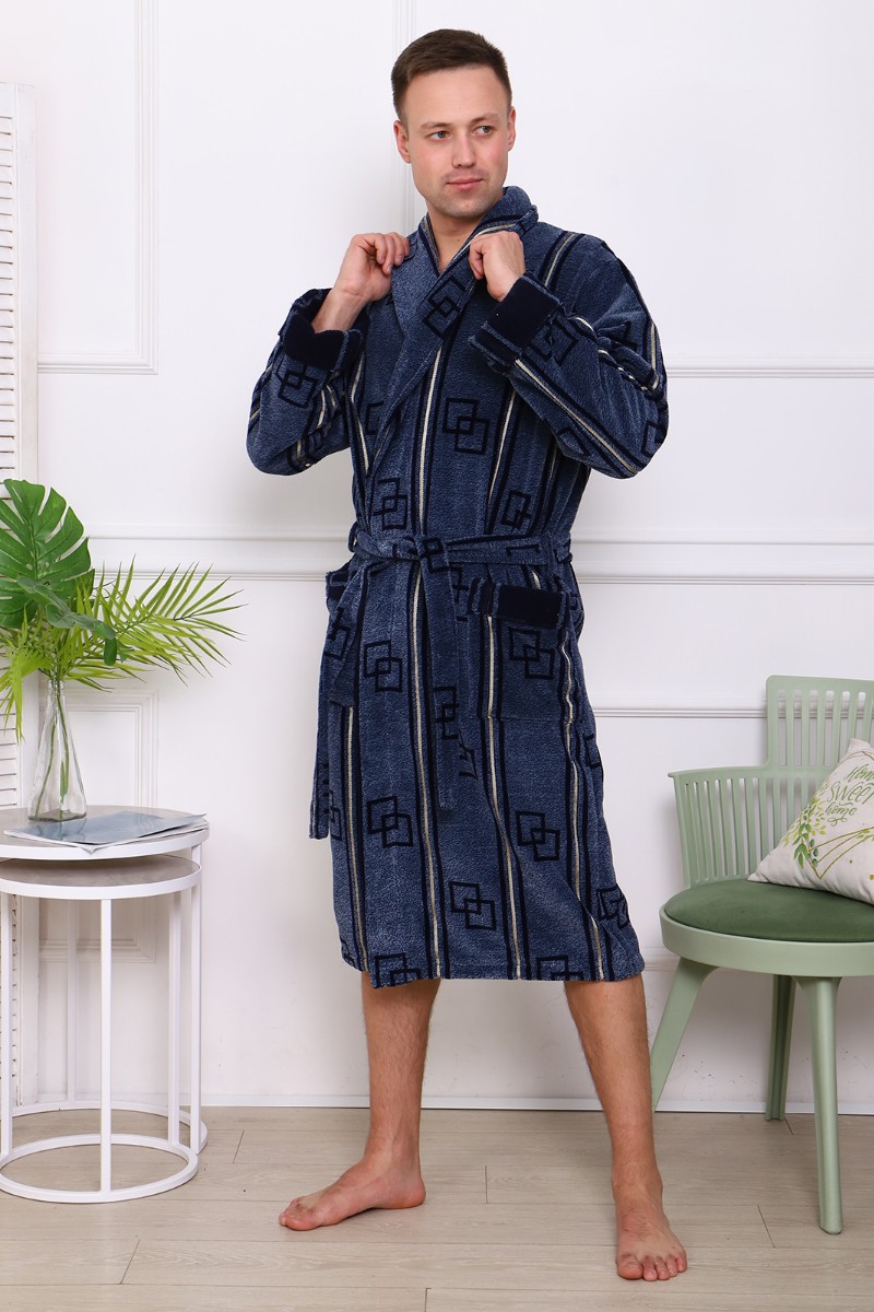 Халат мужской "Цезарь" махра (р-ры: 48-58) индиго