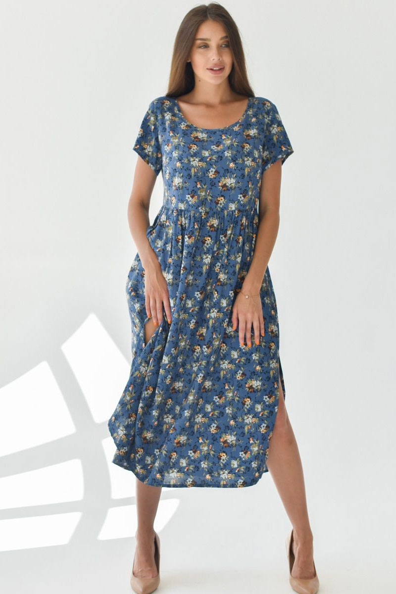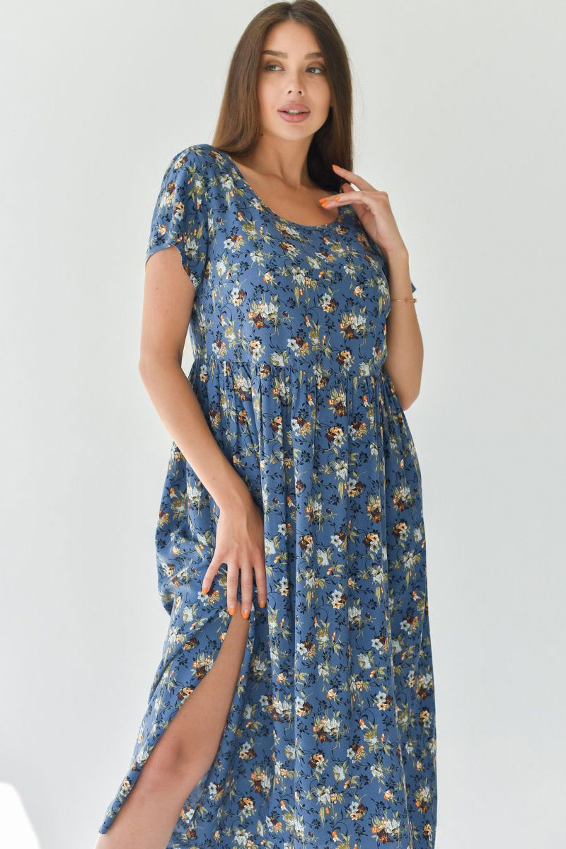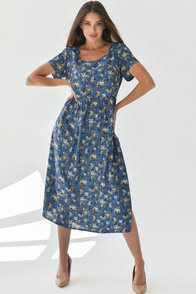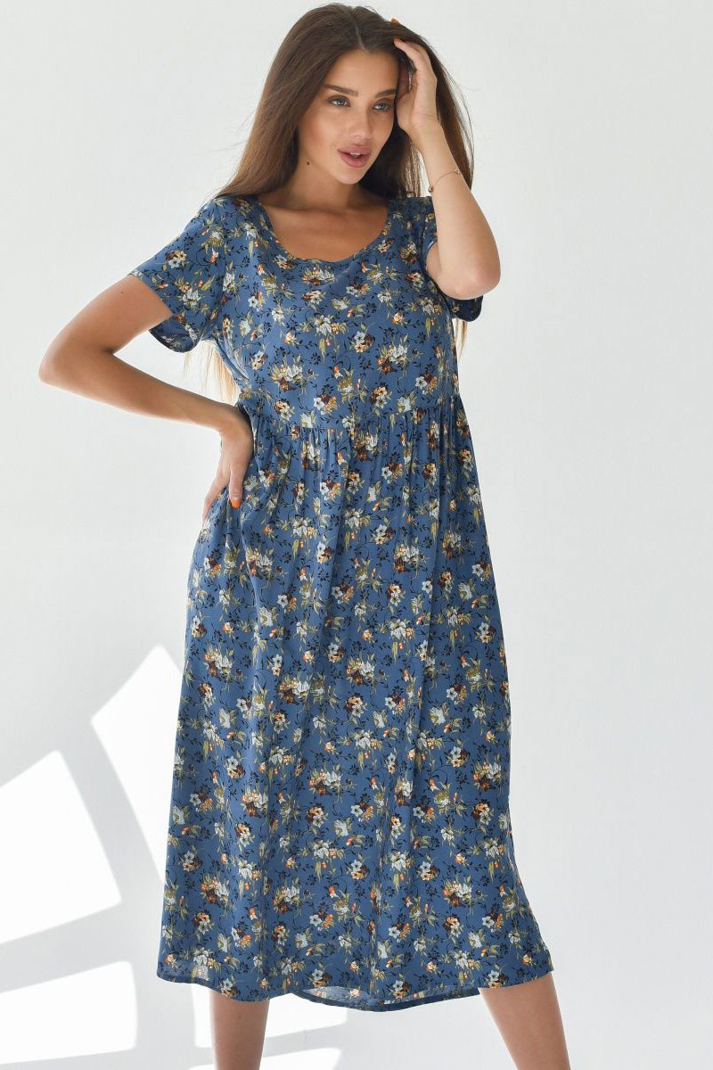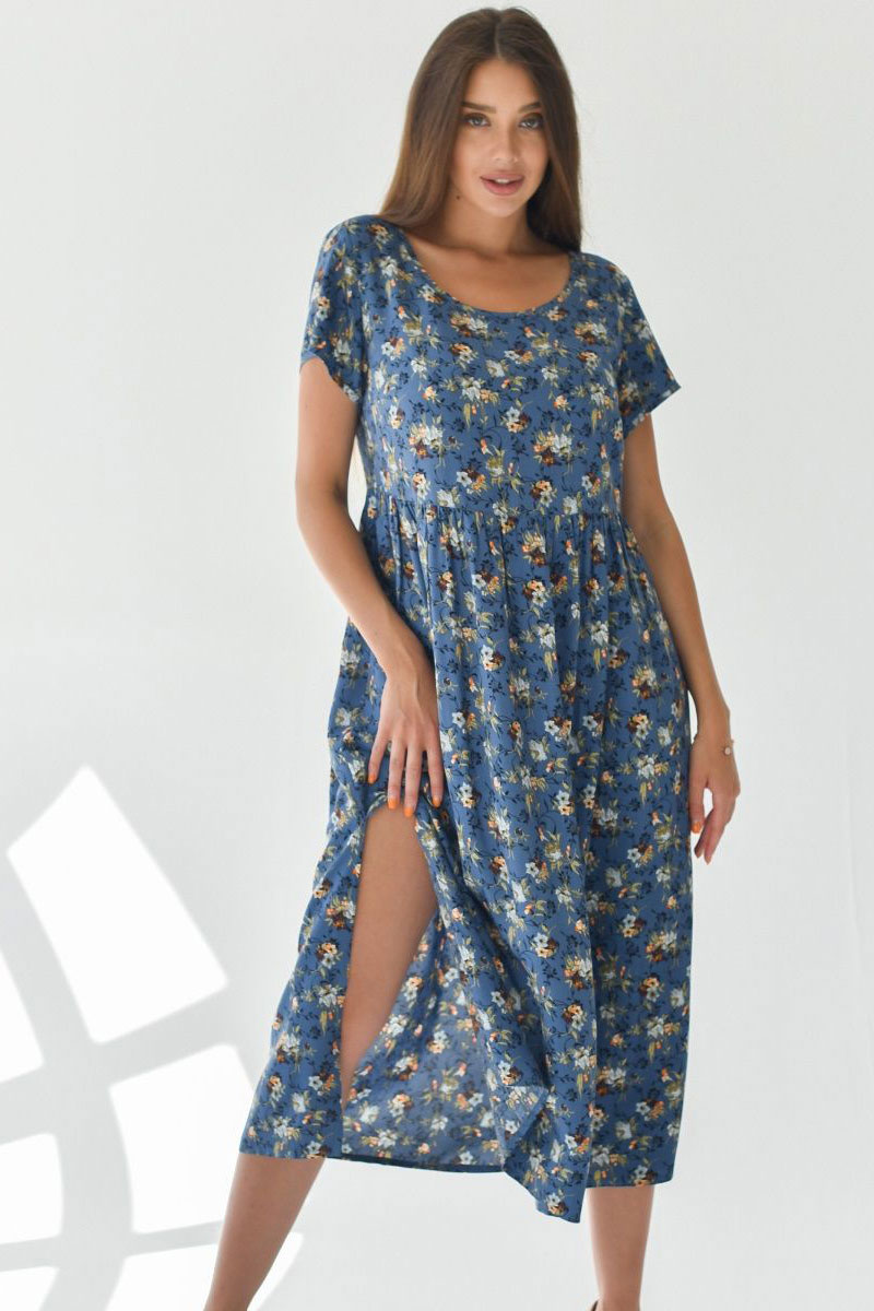 Платье женское "Фиджи" штапель (последний размер) синий 64