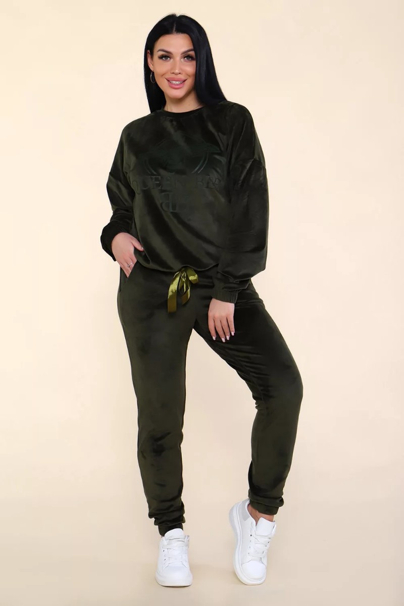 Костюм двойка женский 635 "QUEEN BEE" велюр стрейч (р-ры: 46-56) хаки