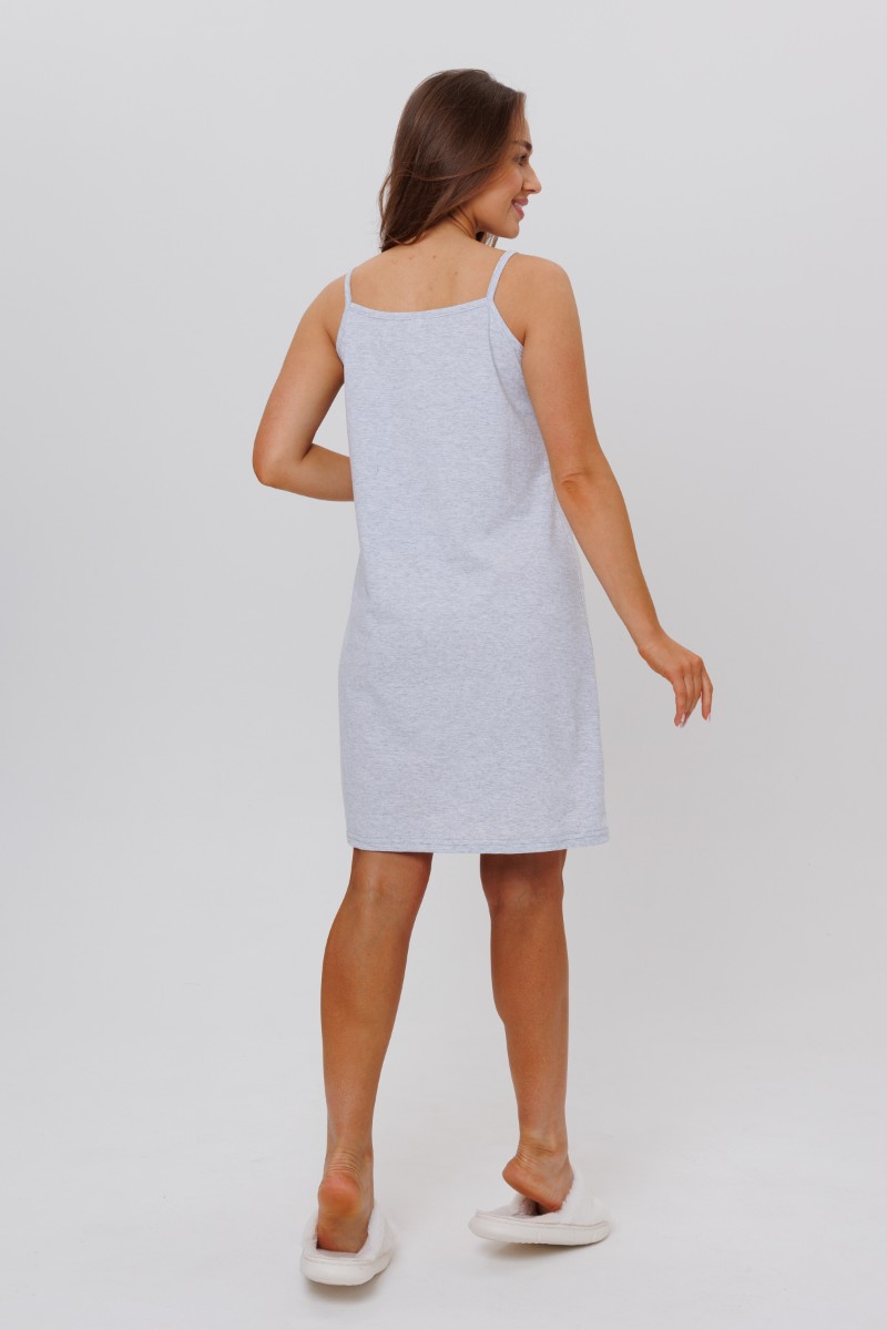 Представляем Вашему вниманию нежную ночную сорочку, сшитую из воздухопроницаемой кулирки. Модель на бретельках. Передняя полочка украшена кружевом. По низу изделия разрезы, украшенные бантиками.
