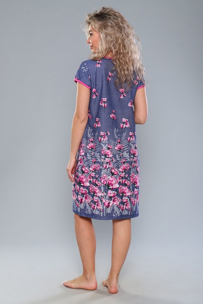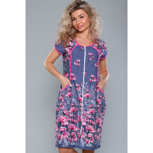 Халат женский "Глория" Р-3772 кулирка (р-ры: 48-58) джинс+розовые цветы