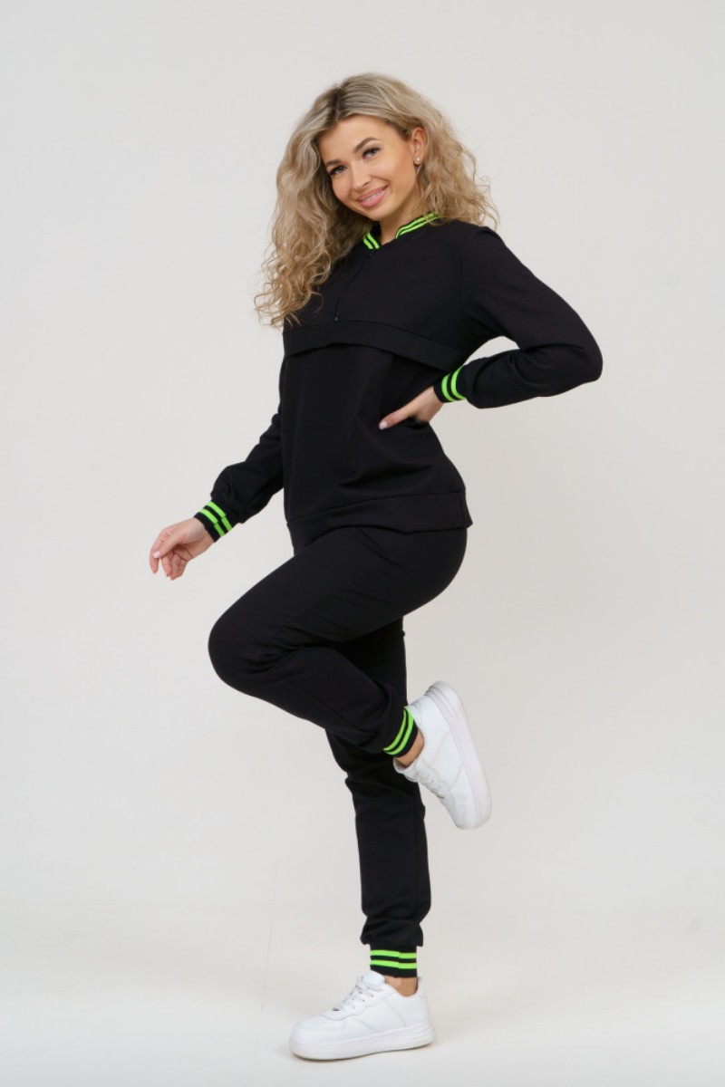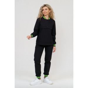 Костюм двойка женский 882 футер с лайкрой (р-ры: 44-54) черный+зеленый