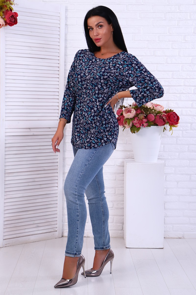 Представляем Вашему вниманию изящную женскую тунику с круглым вырезом горловины и рукавом 7/8. Низ туники, горловина, низ рукава обработаны швом вподгибку.