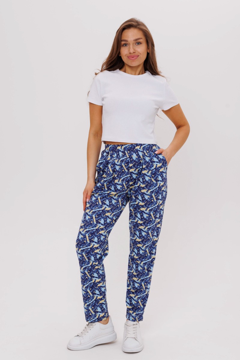 Представляем Вашему вниманию легкие женские брюки-чиносы. Полуприлегающий силуэт. Зауженный крой. Пояс на резинке. Прорезные карманы. Длина до щиколотки. Удобная посадка. Модель сшита из приятной телу, высококачественной кулирки - 100% натуральный хлопок, который отлично пропускает воздух, позволяя коже дышать.