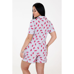 Представляем Вашему вниманию стильную женскую пижаму, сшитую из трикотажного полотна "кулирка" (100% хлопок). Пижама состоит из кофты и шорт. Кофта свободного кроя на пуговицах, воротник отложной, обработан кантом. Низ шорт и рукава кофты обработаны кантом. Нежный наряд для сна и отдыха!