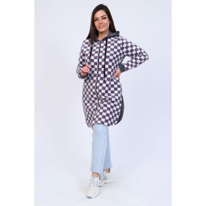 Представляем Вашему вниманию уютную женскую толстовку прямого силуэта на молнии, с капюшоном на шнуровке через люверсы. Длинный рукав на манжете. Закругленный низ полочек.