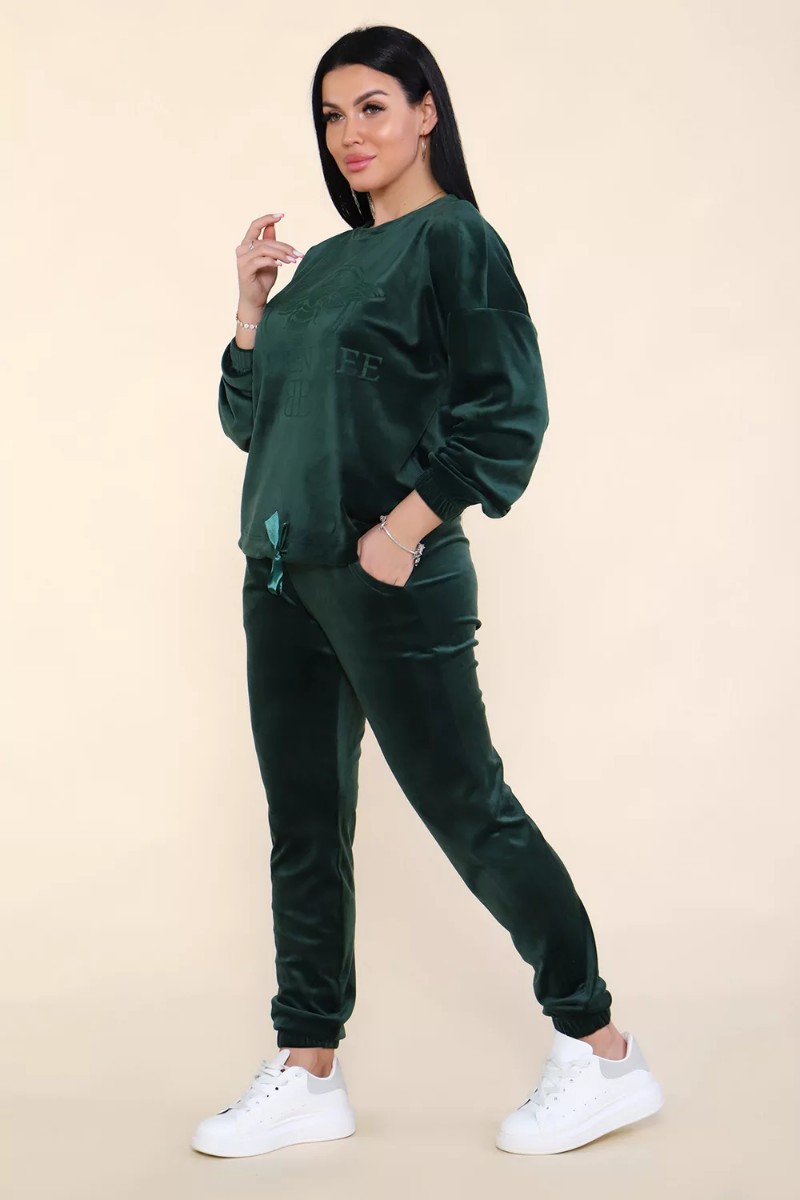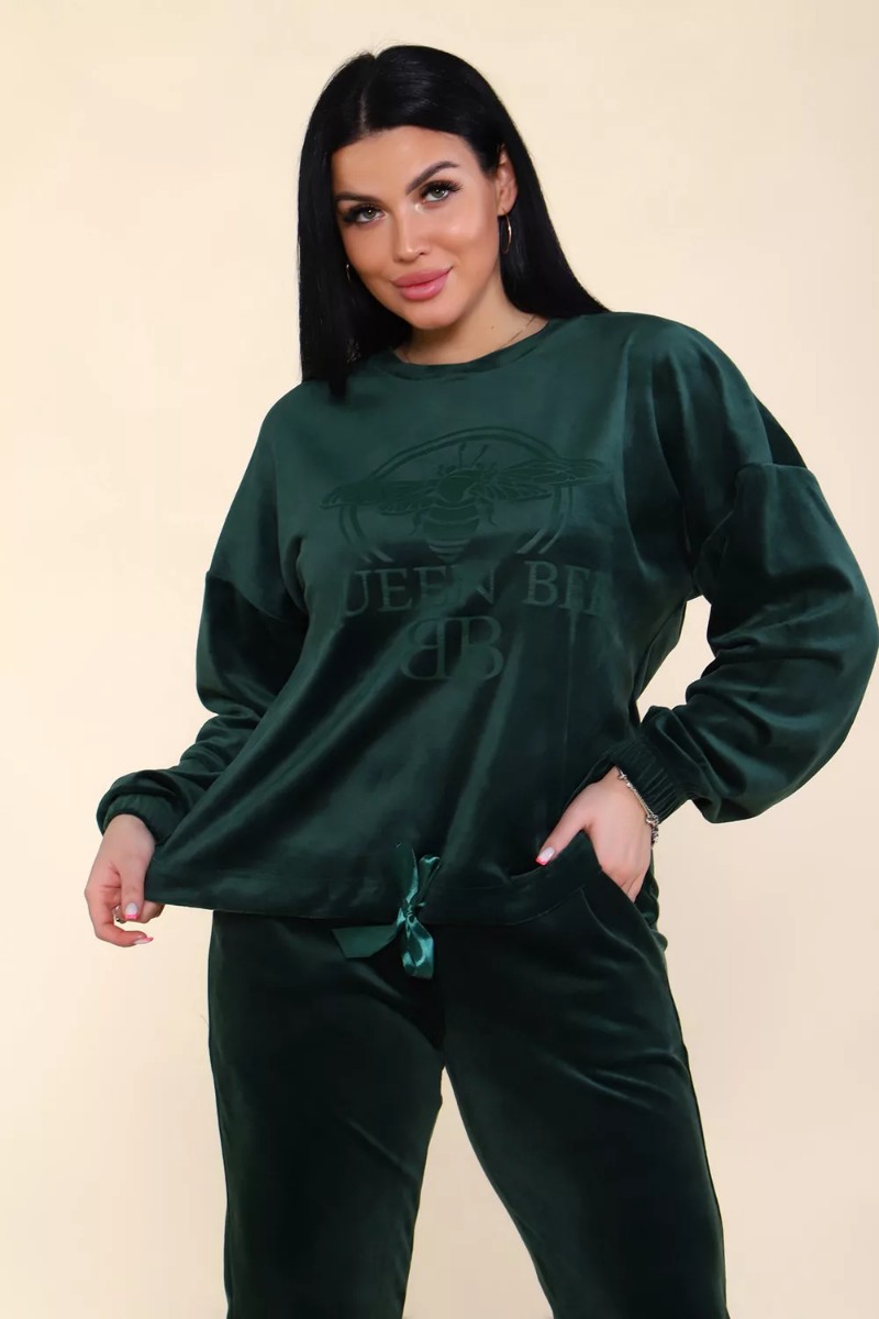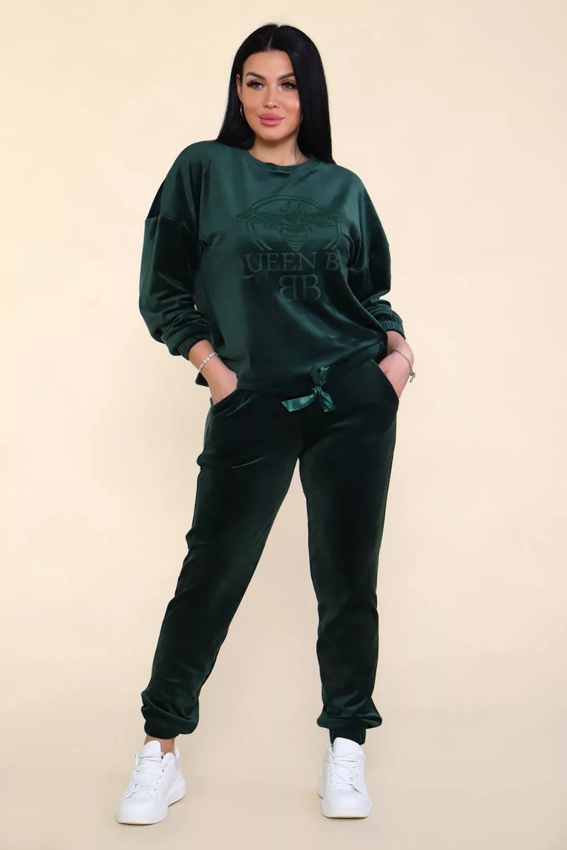 Костюм двойка женский 635 "QUEEN BEE" велюр стрейч (последний размер) изумруд 56