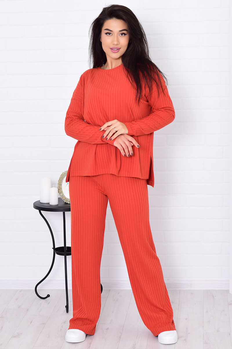 Костюм двойка женский Ф5016б трикотаж "лапша" (р-ры: 42-56) терракотовый