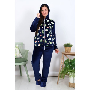 Костюм двойка женский с капюшоном КВ-005 велсофт (последний размер) синий авокадо 46