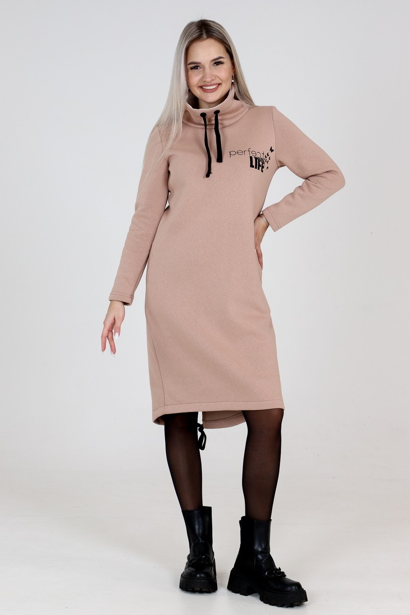 Платье женское П131 футер 3-х нитка с начесом (последний размер) бежевый 50