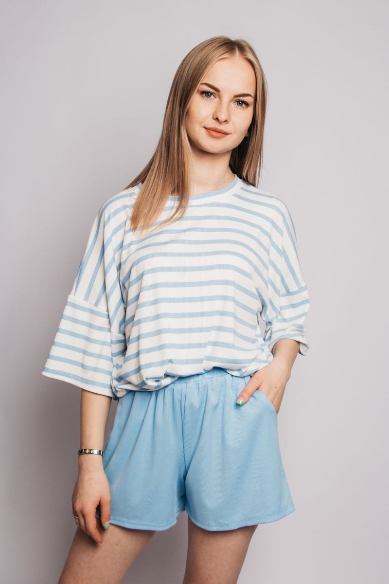 Костюм двойка женский №4357 лапша (р-ры: 44-50) белый, голубая полоска