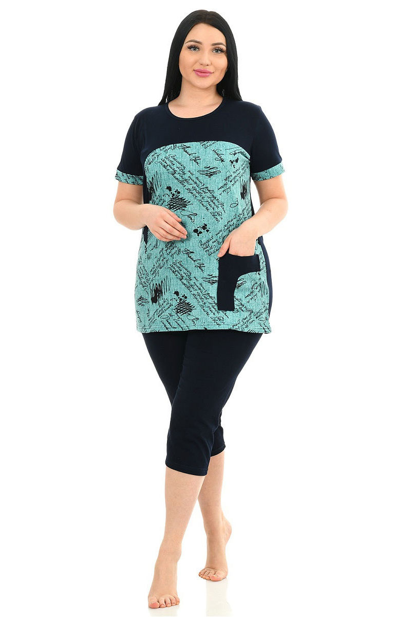 Костюм двойка женский 012 кулирка (р-ры: 50-62) бирюзовый
