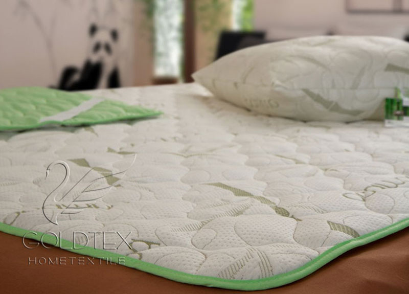 - Стеганный объемный жаккардовый трикотаж и слой уплотнителя из силиконизированного полиэфирного микроволокна придают умеренную мягкость поверхности;