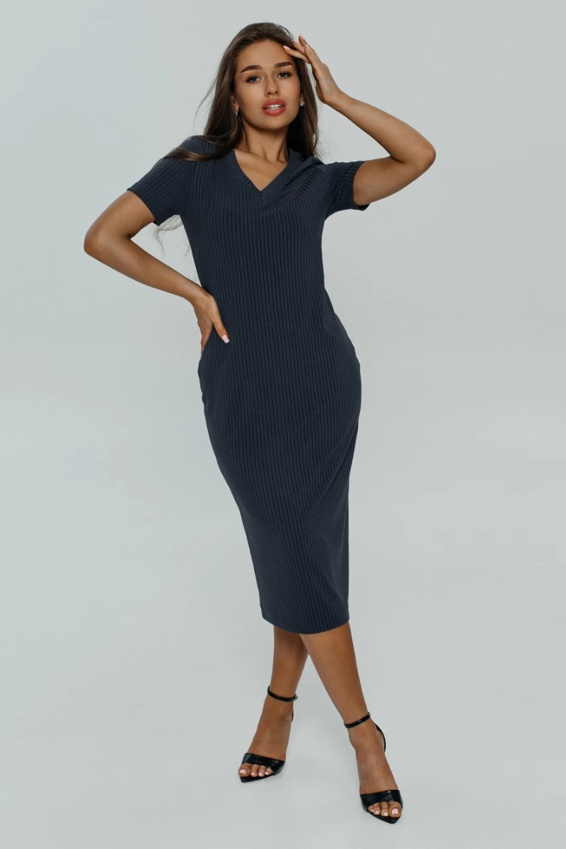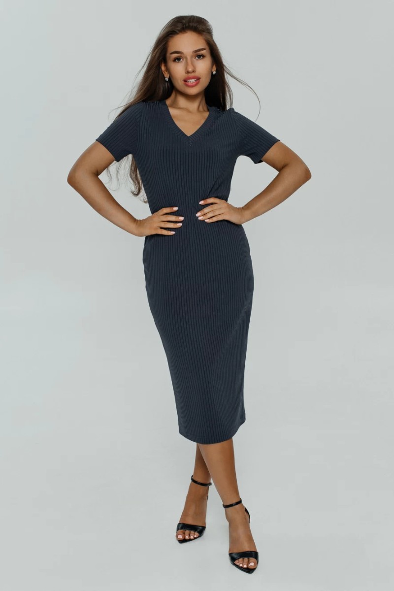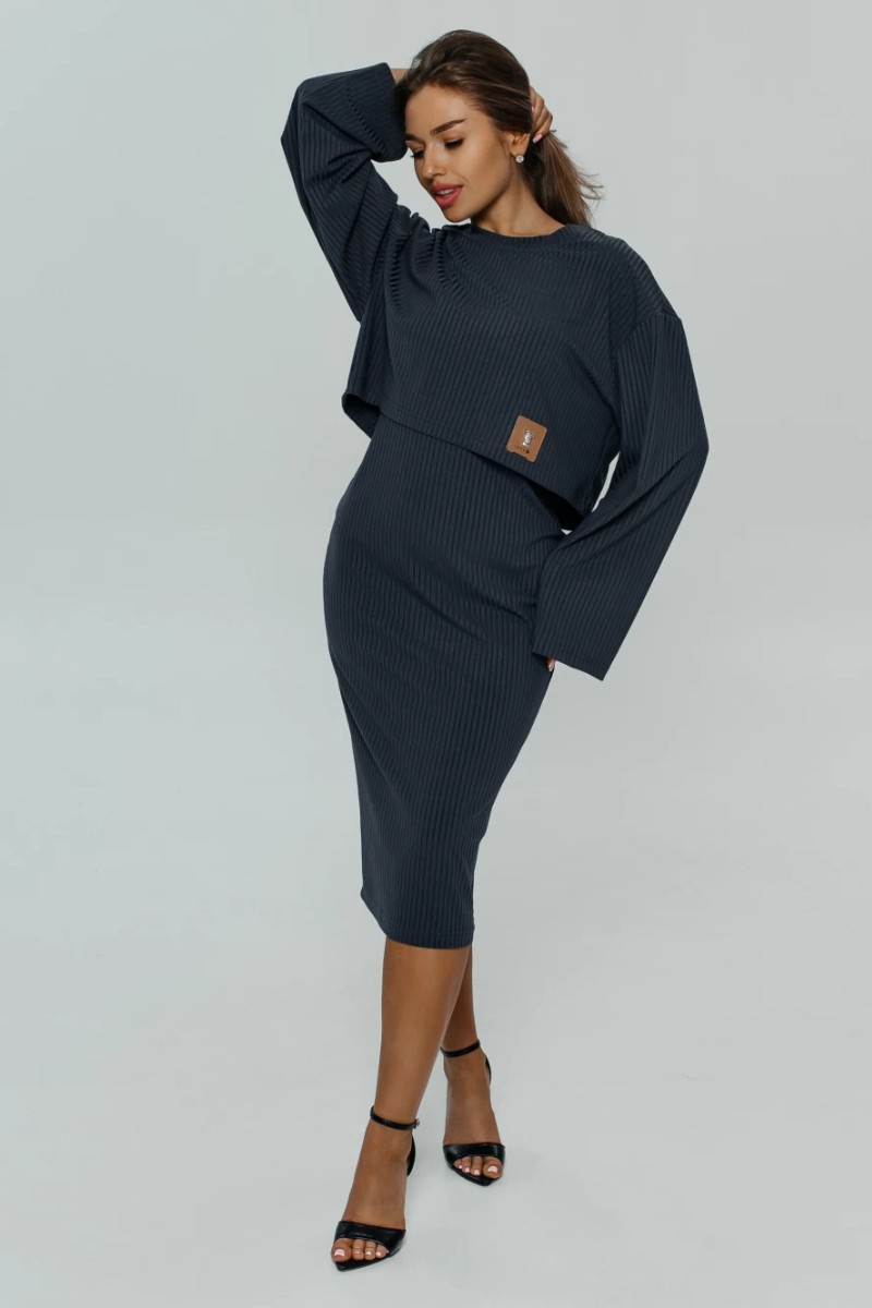 Платье двойка женское "Прима" кашкорсе лапша (последний размер) графит 56