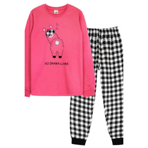 Пижама детская №91229 футер 2-х нитка с начесом (р-ры: 140-164) розовый-черная клетка