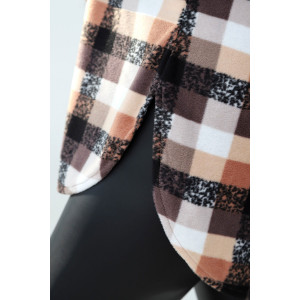 Представляем Вашему вниманию эффектную тунику-рубашку из трикотажного полотна «флис» с рисунком в крупную клетку, свободного покроя, с длинными втачными рукавами, стояче-отложным воротником, фигурной линией низа и центральной бортовой застежкой на обметанные петли и пуговицы. Полочка – с нагрудным карманами прямоугольной формы. Рукава – с притачными манжетами. В таком наряде Вы будете чувствовать себя комфортно и привлекательно.
