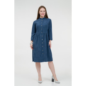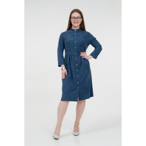 Представляем Вашему вниманию платье-халат из вельвета с воротником-стойкой, центральной застежкой на планку с пуговицами. Рукава втачные с манжетами, по линии талии подрез, юбка в мелкую сборку.