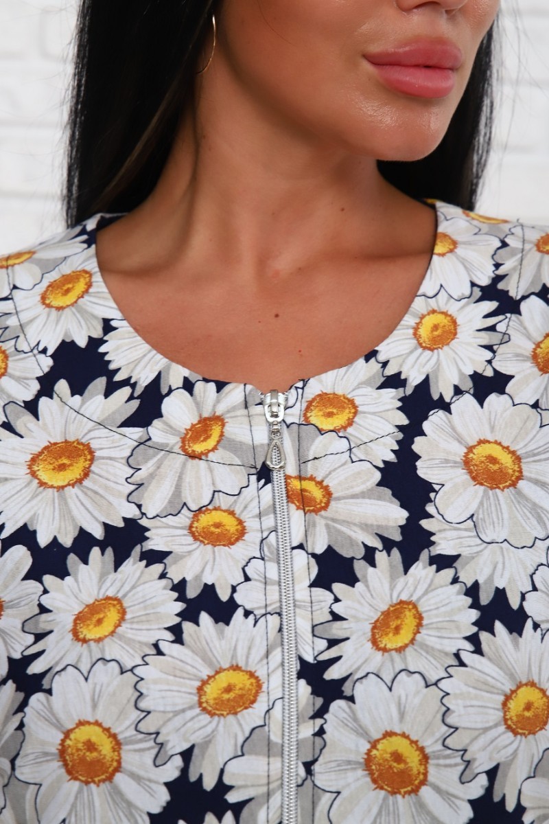 Халат женский 525 кулирка (р-ры: 48-62) темно-синий с белым ромашка