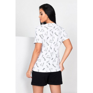 Представляем Вашему вниманию легкий женский костюм двойку из кулирки - приятного к телу, дышащего хлопка. Футболка украшена набивным рисунком с надписями, шорты однотонные. Костюм красиво сидит на фигуре и подчеркивает её достоинства. В нём Вы будете чувствовать себя комфортно и уверенно.