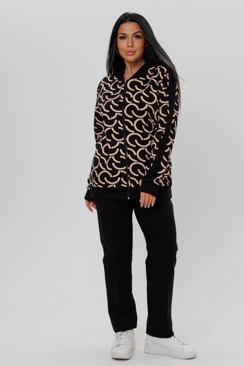 Костюм двойка женский №1686/1 футер 2-х нитка (р-ры: 48-58) черный-бежевый
