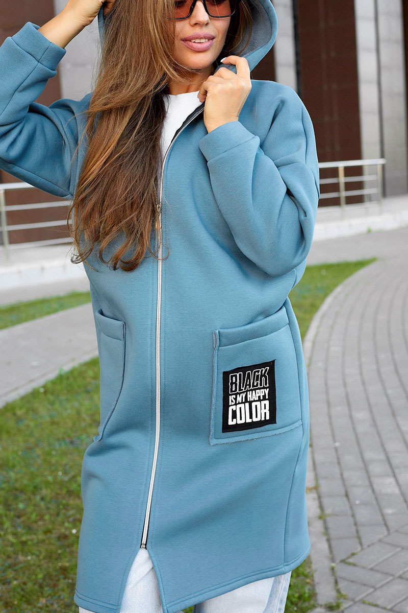 Представляем Вашему вниманию эффектную женскую удлиненную толстовку с капюшоном, сшитую из уютного, приятного телу материала с начёсом. Модель, дополненная вместительными накладными карманами, обеспечит максимум комфорта и тепла в холодное время года.
