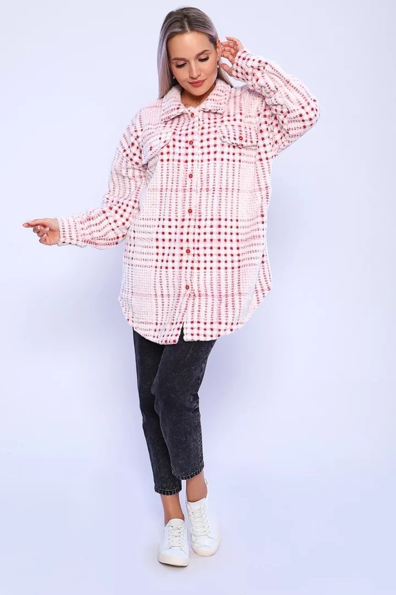 Туника-кардиган женская 884 велсофт (р-ры: 50-60) белый с красным