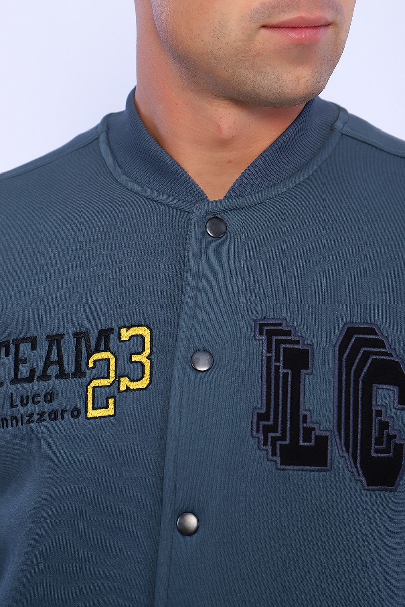 Представляем Вашему вниманию мужскую толстовку-бомбер, изготовленную из футера 3-х нитки с начесом. Ткань высокого качества, не деформируется после многочисленных стирок, не закатывается в процессе использования. Изделие без капюшона, воротник округлой формы. Рукава на манжете, контрастного цвета. На груди выполнена объемная вышивка с логотипом; вышивка нанесена и на левый рукав.Толстовка имеет застежки-кнопки, так же как и карманы на кнопках. Данная модель мега-популярна в этом сезоне, дополнит гардероб яркими, модными красками. Идеальна для холодного времени года.