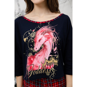 Костюм двойка женский №8407 кулирка (р-ры: 42-56) красная клетка
