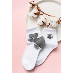 Представляем Вашему вниманию комплект женских носков с изображением плюшевого медведя. Медведь связан из фантазийной пряжи с "пушком", что придает объемности и пушистости изделию.